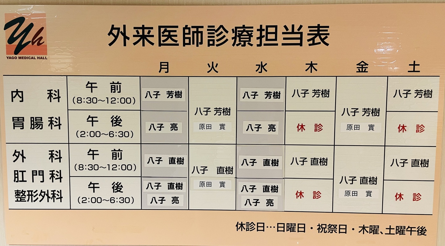 当院の診療時間は毎週(月曜日)(火曜日)(水曜日)(金曜日)は8:30〜12:30、14:00~18:00となります。