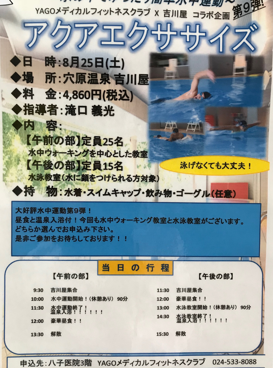 アクアエクササイズ、穴原温泉:吉川屋とのコラボ企画第9弾です。