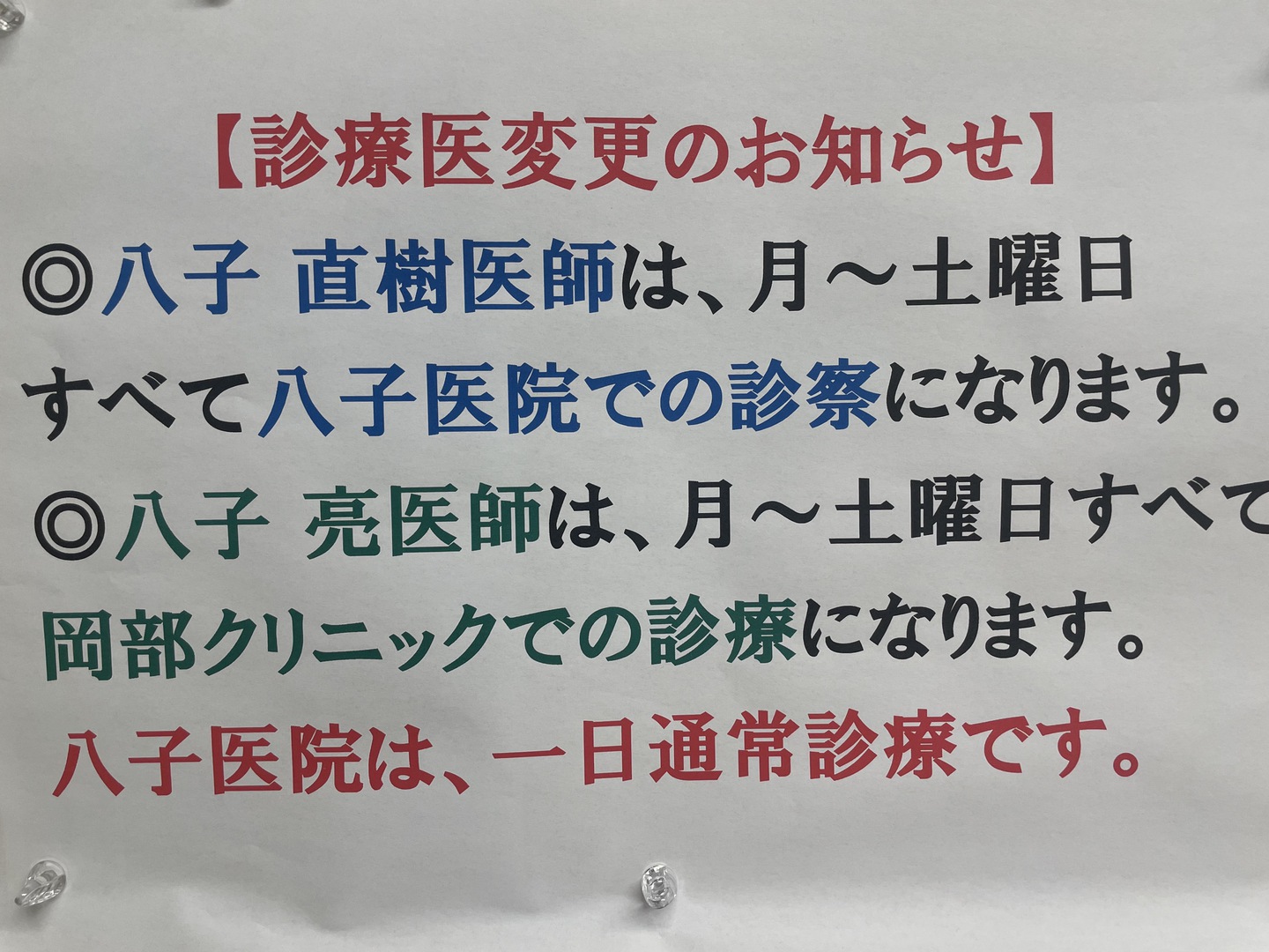 5月30日から八子医院:外科、肛門科の診療体制が変わりました。